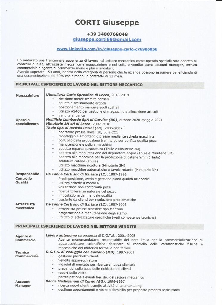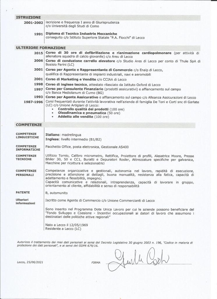 28 giugno 202128 giugno 2021giuseppecorti69 In data odierna ho caricato il mio nuovo curriculum vitae Giuseppe Corti Condividi: Condividi su X (Si apre in una nuova finestra) X Condividi su Facebook (Si apre in una nuova finestra) Facebook Mi piace Caricamento... Correlati